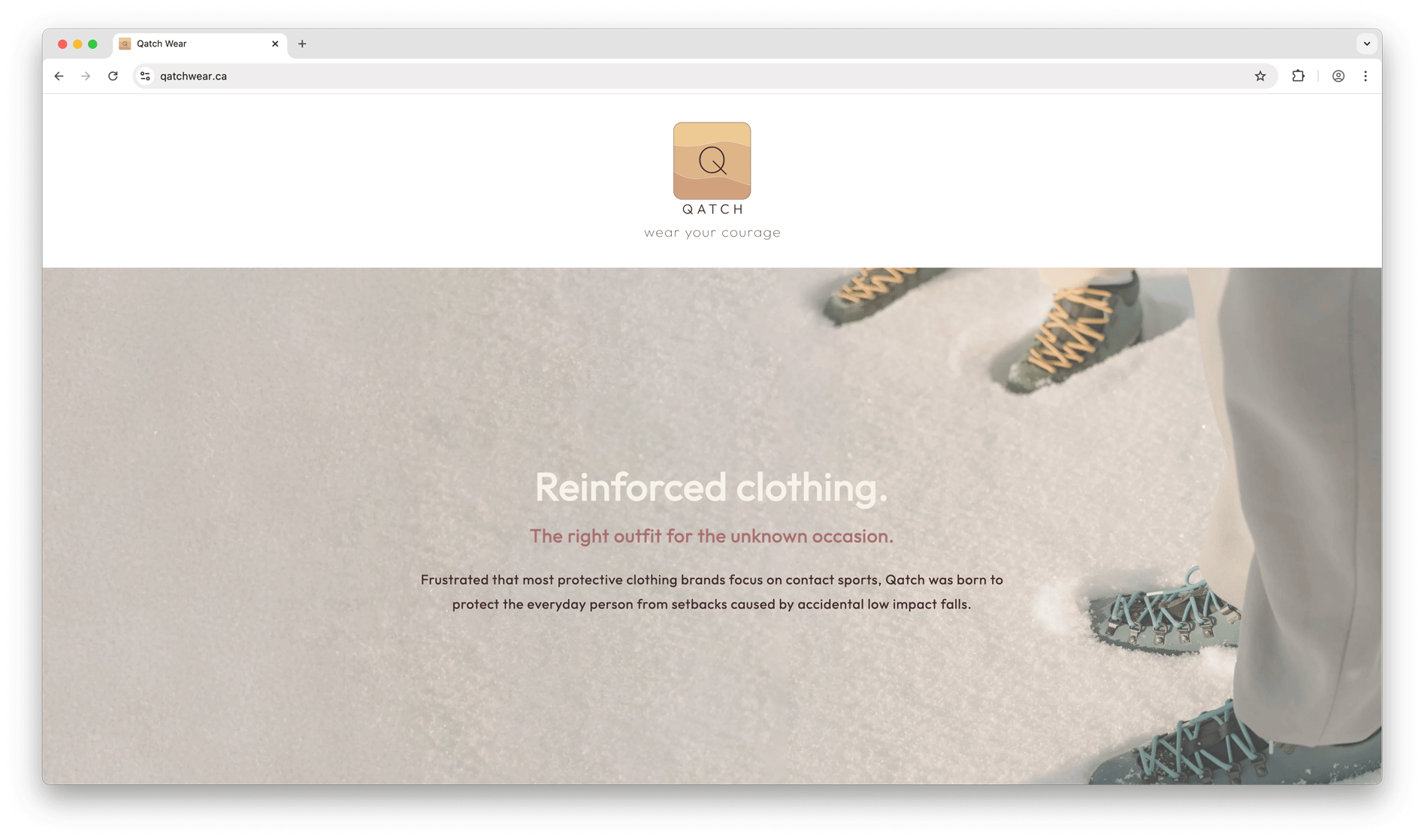 Qatch Wear is a fashion-forward apparel brand designed to discreetly integrate impact protection into everyday clothing. The goal of this project was to create a brand identity and website that clearly communicate the product’s protective function while still feeling modern, approachable, and lifestyle-driven. The client was inspired by the soft, atmospheric sunsets of British Columbia and wanted the brand to feel organic rather than technical or overtly protective. As the sole designer on the project, I used an iterative, user-centered design process to explore and refine visual directions that balanced warmth, fluidity, and function. The resulting logo and visual system draw on organic forms and subtle movement, while the website uses clear hierarchy and intuitive navigation to guide users through the brand story, technology, and products. The final outcome is a cohesive brand and digital experience that balances protection and elegance, supports product education, and positions Qatch Wear as both practical and design-conscious.